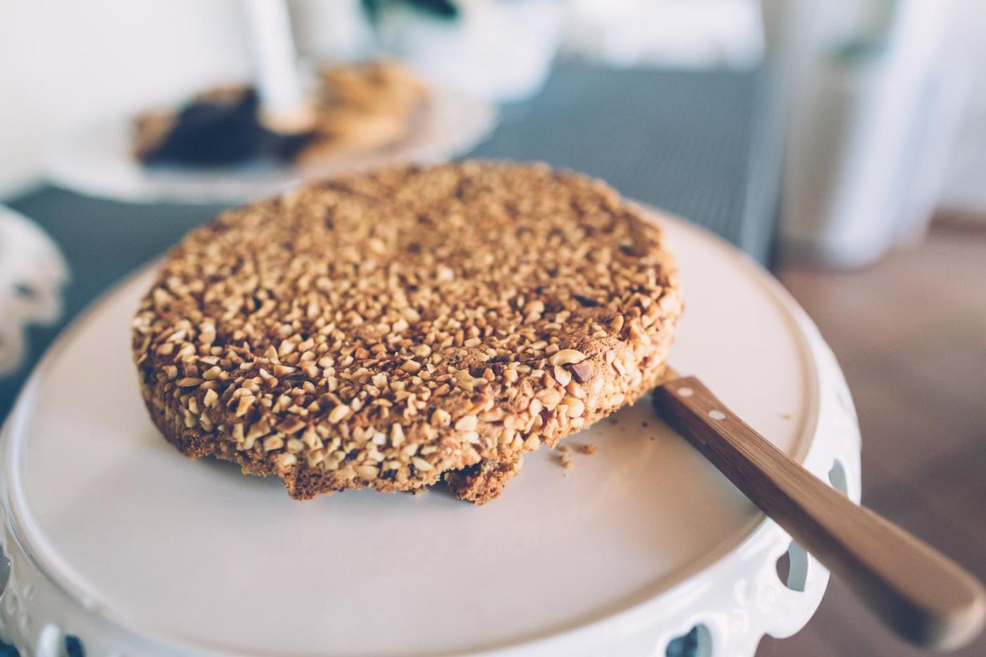 Homemade cakes and fresh fruit are served at the buffet breakfast, while savoury and gluten-free options are also available.